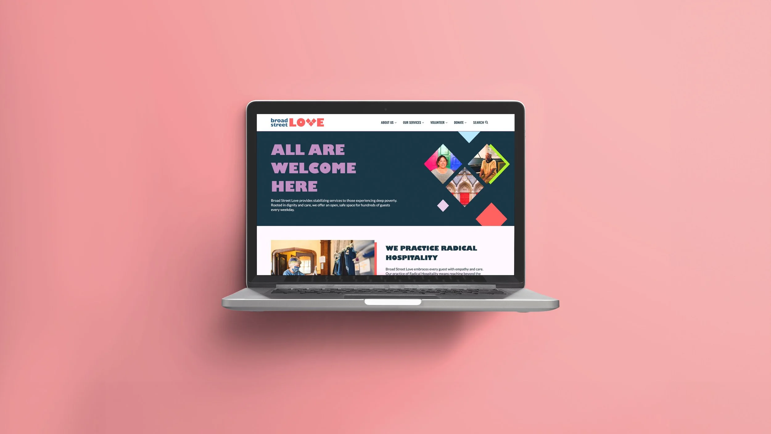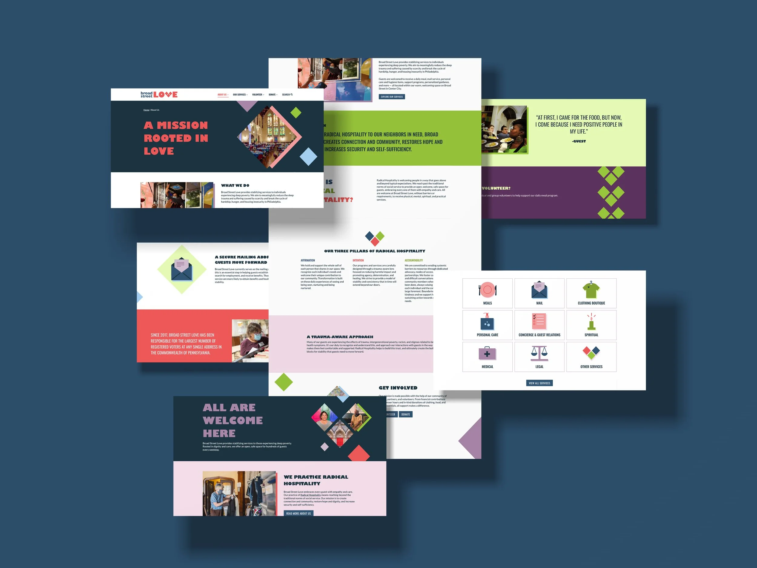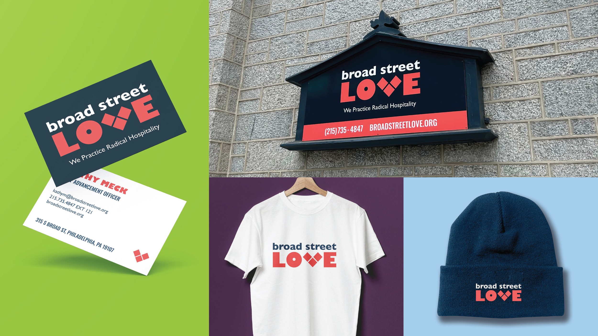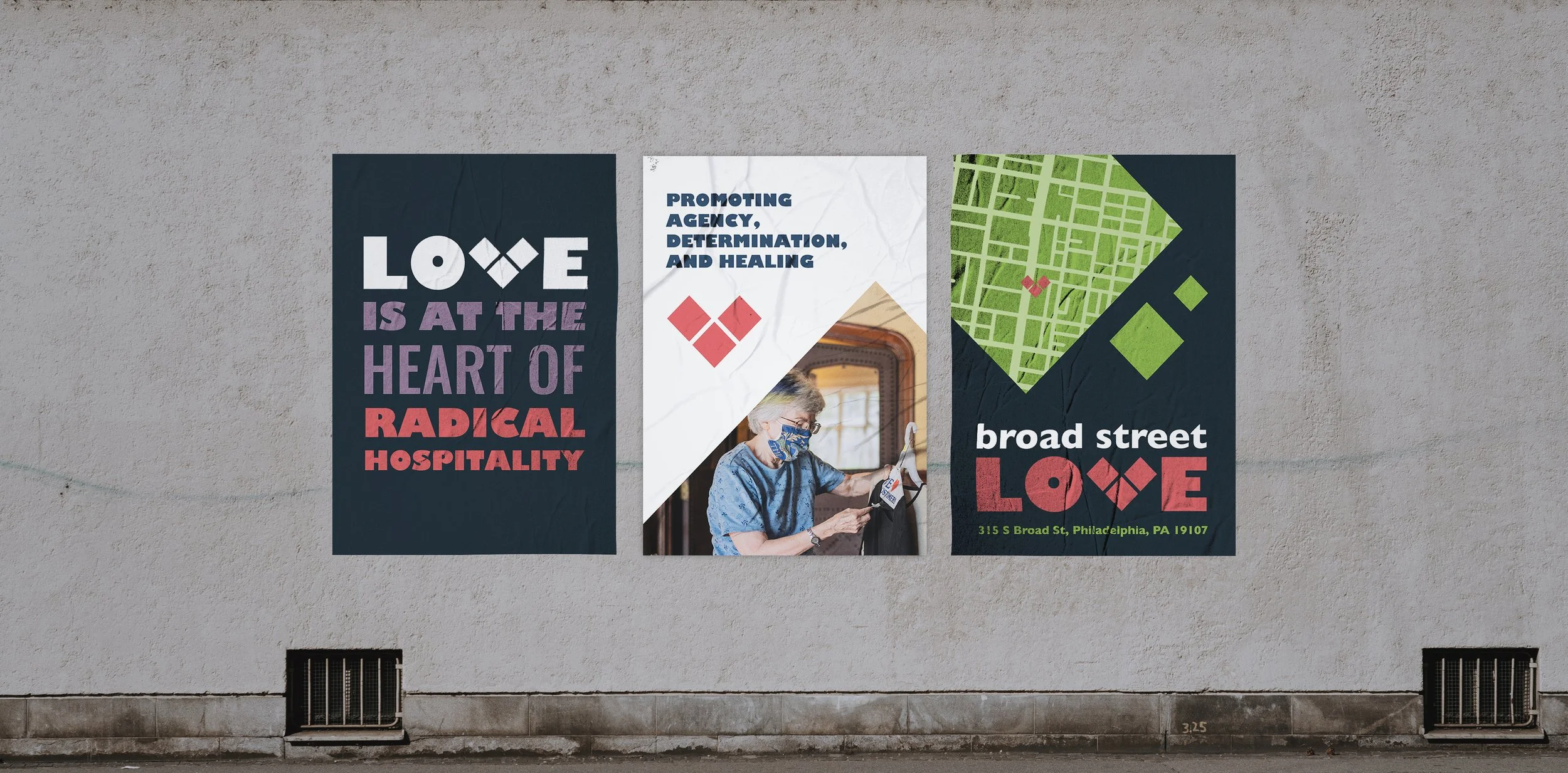Broad Street Love (formerly Broad Street Ministry) is a Philadelphia-based nonprofit providing life-stabilizing services for people experiencing deep poverty and homelessness. After 15 years, they needed a new name and identity to reflect who they'd become: a community of healing for all people, regardless of faith or background.
